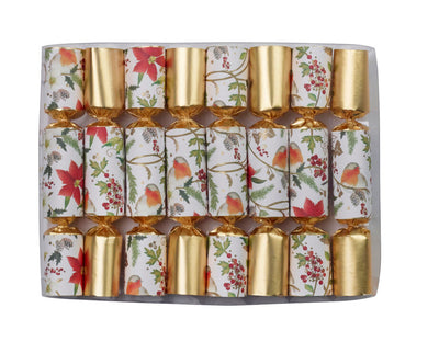 Christmas Crackers Mini Floral Robin Gold 8 pack